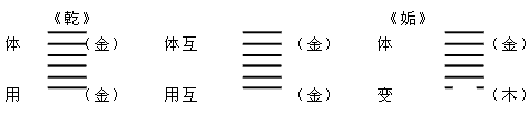 日时测盘的计算方法 王正民 一、计算式的建立 邵康节《梅花易数》起时间卦的方法,可以用如下计算式表示: 上卦数=a+b+x-8n 下卦数=a+b+x+y-8i 动爻数=a+b+x+y-6j 式中:a、b、x、y分别为年、月、日、时之数。年之数和时之数用地支序数,月之数和日之数用月、日(农历)序数。卦数为先天卦卦数。 将上式转换成求x、y的计算式,如果要求某特定年月其全吉卦有那些日、时,则a和b变成了已知,未知数减少了两个,下列联立方程成为可解的了。例:当时为1989(己巳)年六月,则a+b=6+6=12。 y=8 i-12-x+下卦数……………(2) y=6 j-12-x+动爻数……………(3) 式中:n为正整数,只要满足x≤30的要求;I和j亦为正整数,只要满足y≤12的要求;j-I=0~3。对此联立方程只需经过几次简单试算便可求出x和y。因计算时不需查用,无须将表绘制出来(如需查看,可查我所着《六爻预测简明教程》第44页图7)。 二、计算举例 求全吉卦《需》之《节》在己巳年六月份有那些日、时,上卦《坎》数6,下卦《干》数1,动爻数3,变《节》卦。可得到: (1)式:X=8 n-12+上卦数=8 n-12+6=8 n-6,试算: 当n=1时则x=2 当n =2时则x=10 当n=3时则x=18 当n=4时则x=26 以x的四个值代入(2)式(四个值得y的值均相同): (2)式:y=8 i-12-x+下卦数=8 i-12-2+1=8i-13 当i=2时则y=3 当i=3时则y=11 以x的四个值代入(3)式,找出y=3和y=11的x值: (3)式:Y=6 j-12-x+动爻数 当x=2时 y=6j-12-2+3=6j-11 y=1,7,13 无与(2)式同者。 当x=10时 y=6i-12-10+3=6j-19 y=5,11 11与(2)式的y值相同。 当x=18时 y=6 j-12-18+3=6 j-27 y=3,9 3与(2)式y值相同。 当x=26时 y=6 j-12-26+3=6 j-35 y=1,7 7与(2)式值相同。 因此得:x=10 y=11 即初十日戍时 x=18 y=3 即十八日寅时 注意:如x的值代入(3)式,均得不出与(2)式相同的y值,即无时辰解,卦虽全吉亦作废。 三、制成已巳年六月份的全吉日时表 1、筛选出64卦从初爻动到上爻动所得的384个卦中的全吉者。《梅花易数》体、用、互、变七种关系如下图: 注意:动爻所处的卦为用卦。 体、用、互、变七种生克关系中,有单向考虑和双向考虑的。如无克体(用克体、体互克体、用互克体、用互克体互、变克体)或无泄体(体生用、体生互用、体互生用互、体生变)者,即为全吉卦。 2、计算出所选出的全吉日卦的日和时以《乾》卦初爻动变《姤》卦为例,它符合上面的条件,为全吉日卦。 全吉日和时的计算如下: y=8i-12-x+1=8i-11-x=8 y=6j-12-x+1=6j-11-x= 8, 6, 4, 8 得出己巳年六月份的全吉日、时是:初五日未时和二十九日未时。 3、按所计算出的日时,依日期顺序排列出己巳年六月全吉日时表。全部计算过程和全吉日时表见《六爻预测学》第66页—88页。 四、永远通用的全吉日时表 以上表为基础极易求得任何年月的吉日吉时,只要年月之和为一常数(constant),即可得该全日之卦(时辰不能变),办法是:往后一月提前一日,往后一年提前一月或一日。 当时已换算成庚午年(正月)全吉日时表。换算过程如下:己巳年六月换算成同年正月,正月初六同六月初一,再换算庚午年正月,即正月初五同六月初一或六月二十五(此日无吉卦),月初所缺四天可补齐,即正月初一同己巳年六月二十一……正月初四同己己年六月二十四。利用庚午年(正月)表换算成辛未年(正月)表,辛未年表正月初一庚午年正月初二,至于月未所缺一天极易找出。 利用乙亥年表换算成丙子年表时应注意,亥年换子年(往后一年),年之数不是多一而是少十一。为使初学者不至于搞错,在1996年我又制成丙子年全吉日时表(见《六爻卦例详解》第91页)。 熟炼者每年只需换算一次,列出正月的,以后使用时每月错动一天,心中默算便可。故此表永远通用。